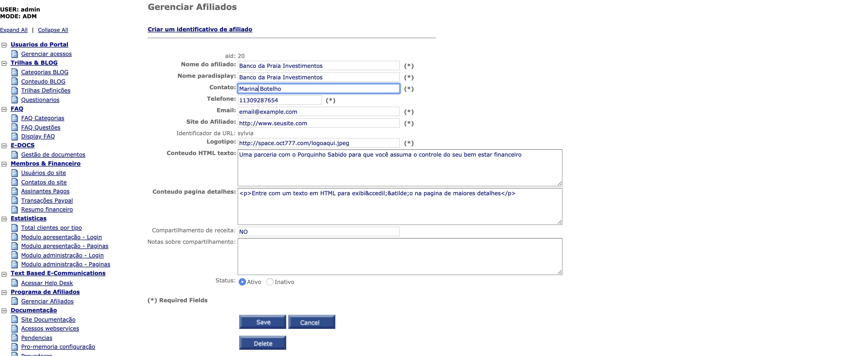 Modulo afiliados:Gerenciamento de afiliados e parceiros