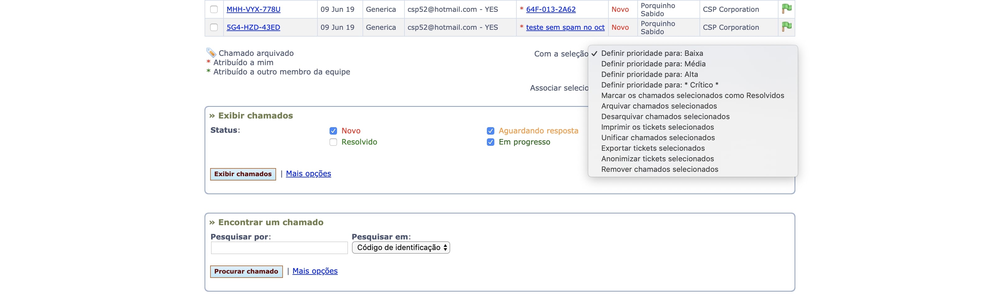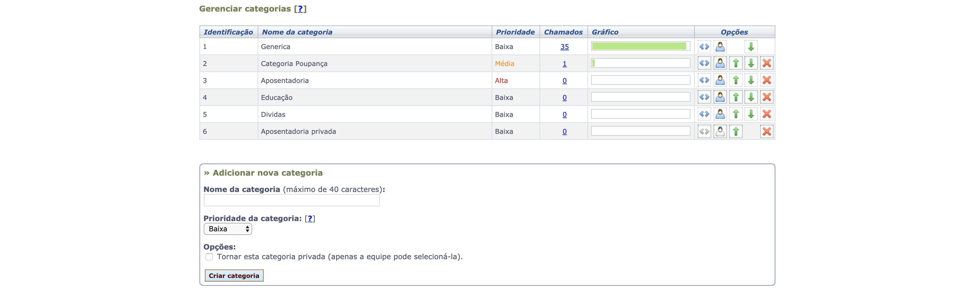 Os chamdos podem ser criados automaticamente e classificados por CATEGORIAS no modulo de Apresentação. As CATEGORIAS podem ser associadas a MEMBROS DA EQUIPE DE ATENDIMENTO específicos, de forma que a distribuição dos chamados se dará de forma automatica e distribuida pelos vários membros da equipe de atendimento. Os lideres de grupo tem a possibilidade controlar vários membros de atendimento remanejando os chamdos entre eles.