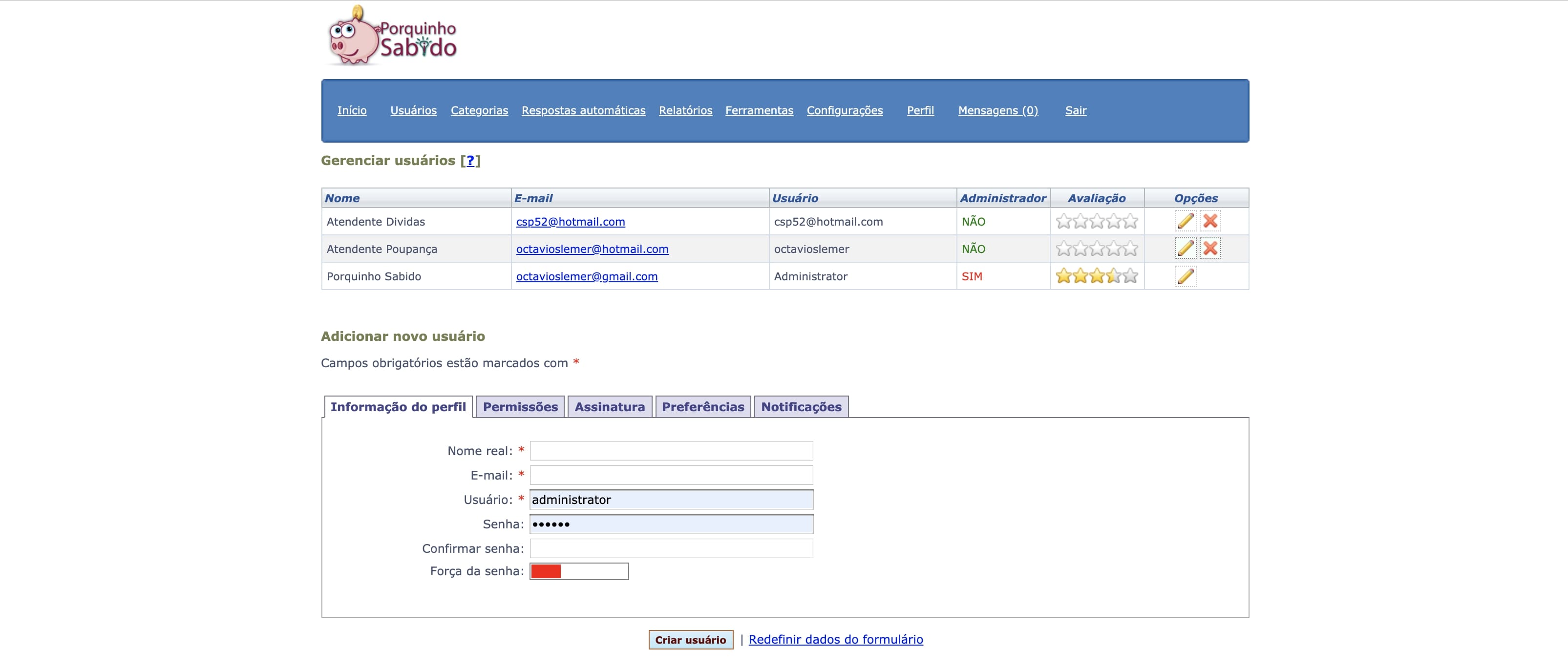 A plataforma permite a criação de contas para os vários membros da equipe usando diferentes privilégios como: