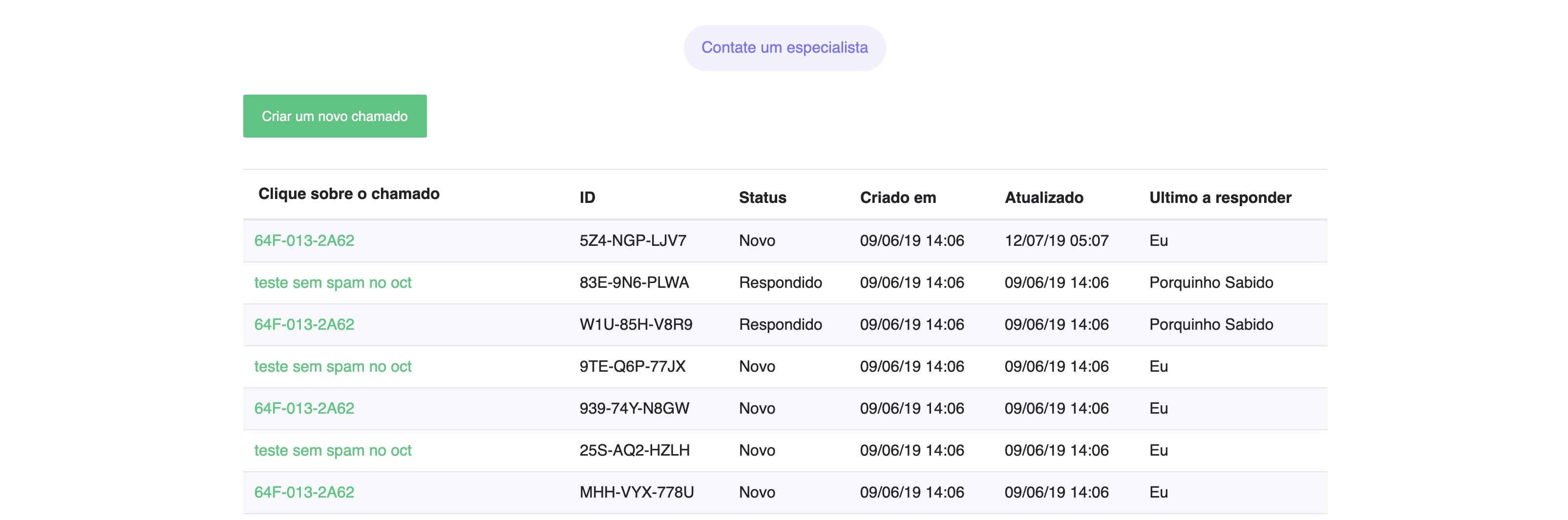 Através da seleção da opção CONTATE UM ESPECIALISTA o sistema abilita o Modulo Helpdesk que fornece ao administrador, gestores de conteudo, profissionais de atendimento e lideres de grupo uma ferramenta completa de HELPDESK e gerenciamento de contato de texto para manterem contato com os clientes