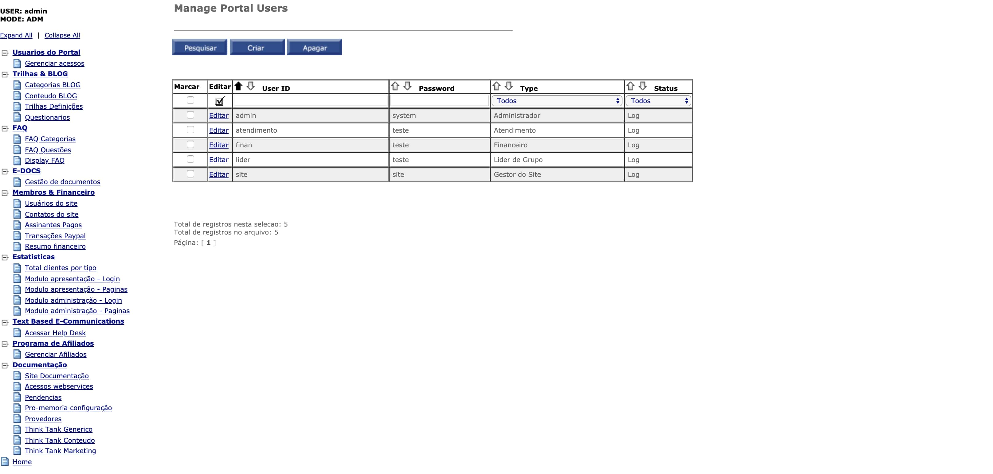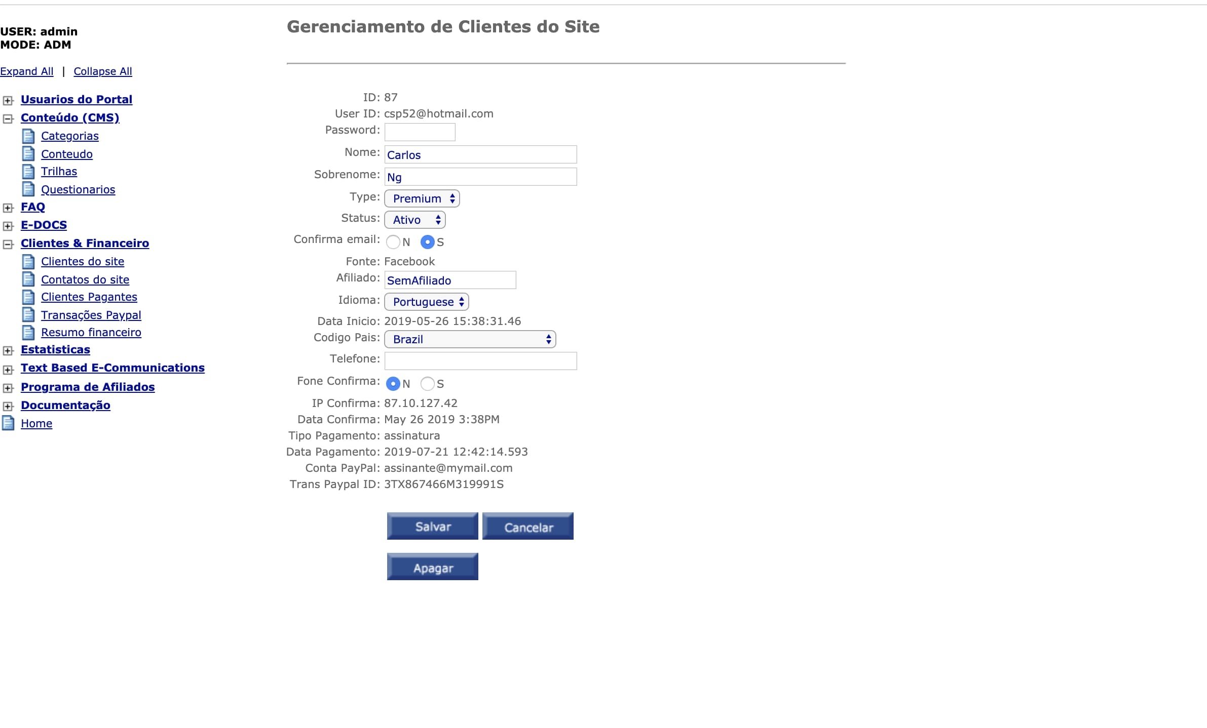O modulo de CLIENTES & FINANCEIRO permite a você acessar as informações detalhadas e sumarizadas de todos os clientes insccritos no site (Gratuitos e Assinantes pagos). Alem disso você terá o controle de assinaturas e os comprovantes de transação e pagamento.