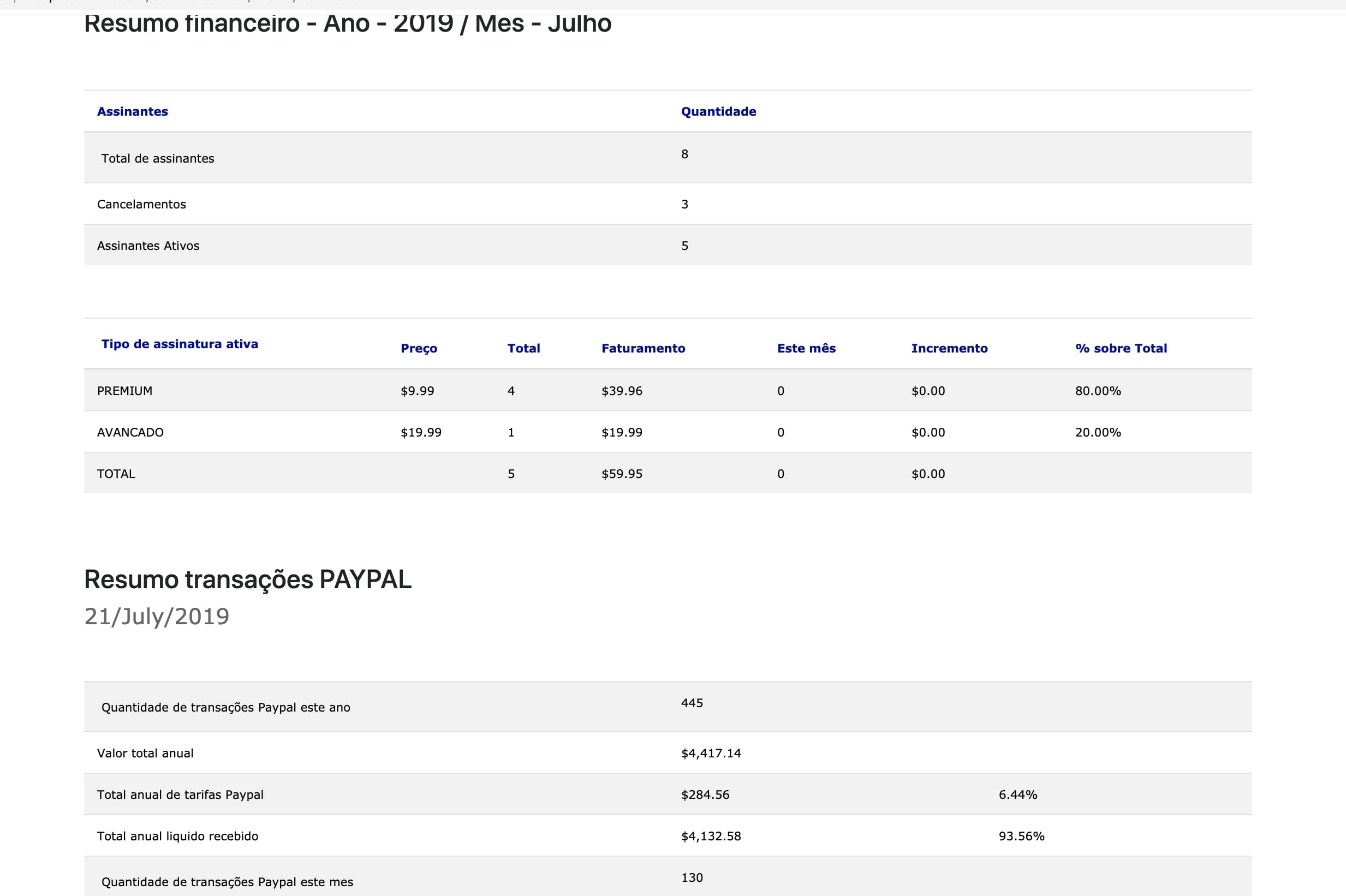 Ferramentas para permitir rapido acesso a informação de assinantes pagos bem como as transações PAYPAL processadas.